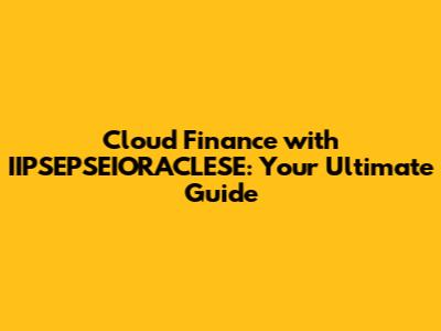 Cloud Finance With IIPSEPSEIORACLESE: Your Ultimate Guide