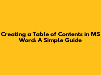Creating A Table Of Contents In MS Word: A Simple Guide