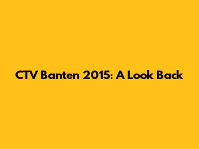 CTV Banten In 2015: A Look Back