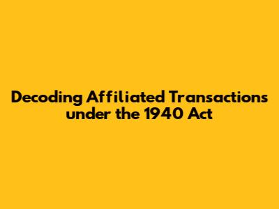 Decoding Affiliated Transactions Under The 1940 Act
