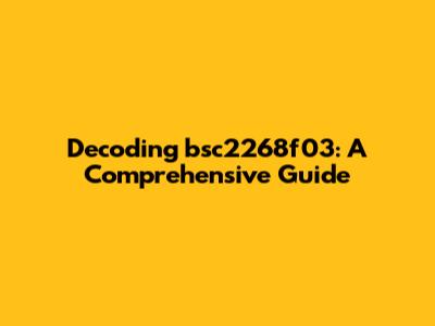 Decoding Bsc2268f03: A Comprehensive Guide