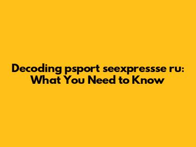 Decoding Psport Seexpressse Ru: What You Need To Know