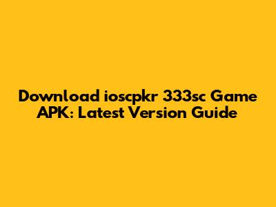 Download Ioscpkr 333sc Game APK: Latest Version Guide