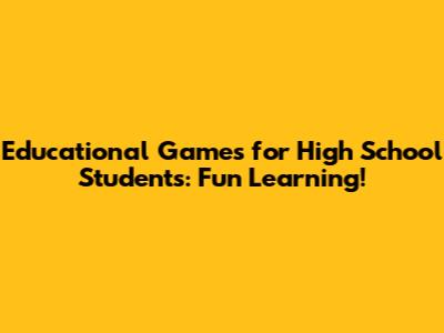 Educational Games For High School Students: Fun Learning!