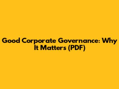 Good Corporate Governance: Why It Matters (PDF)