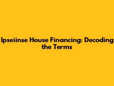 Ipseiinse House Financing: Terms You Need To Know
