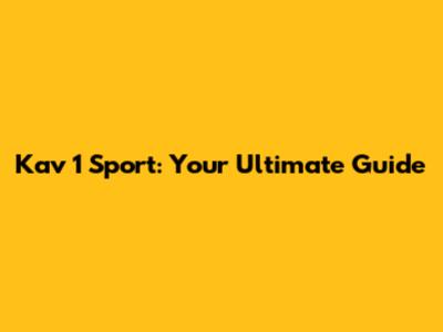 Kav 1 Sport: The Ultimate Guide