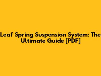 Leaf Spring Suspension: The Ultimate Guide [PDF]