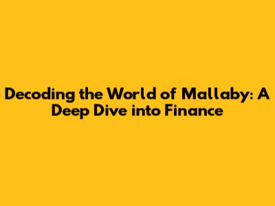 Hey guys! Ever heard the name Mallaby? Well, if you're even remotely interested in finance, you definitely should have! This article is all about diving deep into the world of Mallaby – not a person, but more like a brand of knowledge and insight into the financial markets. We're going to explore what makes Mallaby such a key player, what they cover, and why it's super important for anyone looking to understand the money game. So, buckle up, because we're about to embark on a journey through the often-complex, but always fascinating, world of finance.