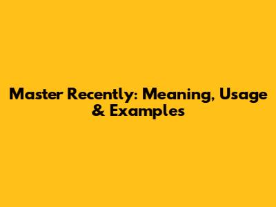 Master 'Recently': Meaning, Usage & Examples