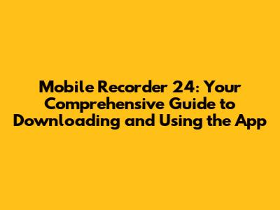 Mobile Recorder 24: Download, Features, And Guide