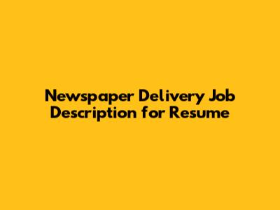 Newspaper Delivery Job Description For Resume