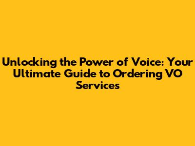 Unlocking the Power of Voice: Your Ultimate Guide to Ordering VO Services