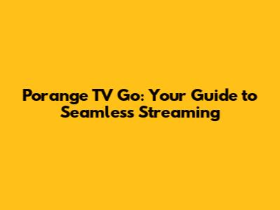 Porange TV Go: Your Guide To Seamless Streaming