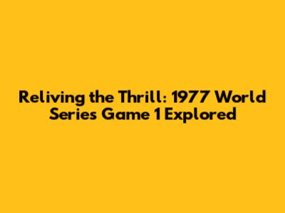 Reliving The Thrill: 1977 World Series Game 1 Explored