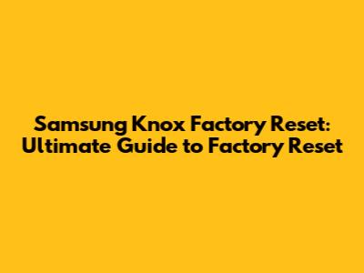 Samsung Knox Reset: Ultimate Guide To Factory Reset