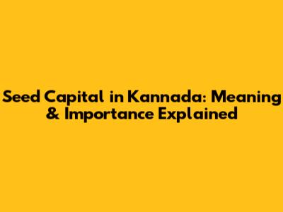 Seed Capital In Kannada: Meaning & Importance Explained