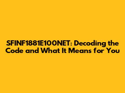 Unraveling the Mystery: What is SFINF1881E100NET?