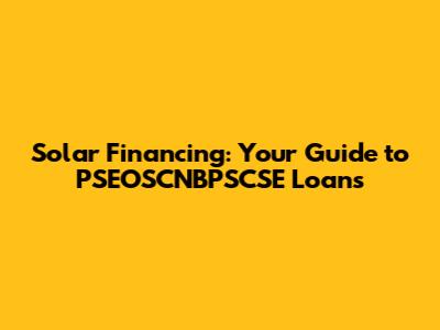 Are you thinking about going solar but worried about the upfront costs? Solar financing can be the perfect solution! Understanding the different loan options, especially programs like PSEOSCNBPSCSE, is crucial. Let's break down what solar financing is all about and how you can make the switch to clean energy without breaking the bank.