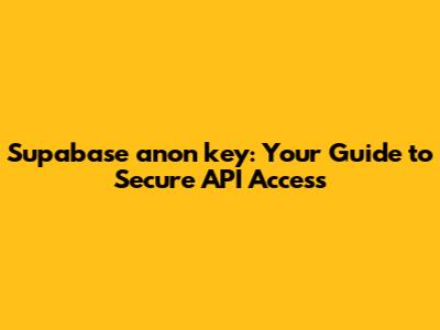 Supabase Anon Key: Your Guide To Secure API Access