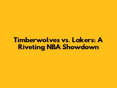 Timberwolves Vs. Lakers: A Riveting NBA Showdown