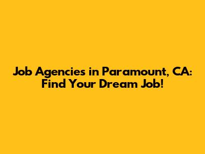 Top Job Agencies In Paramount, CA: Find Your Dream Job!