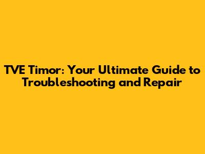 TVE Timor: Comprehensive Guide To Repair, Troubleshooting, And Solutions