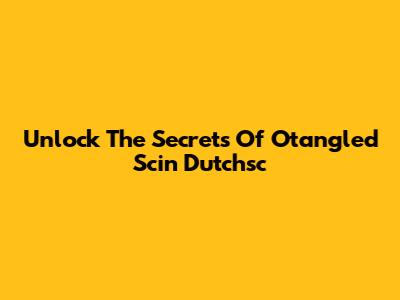 Unlock The Secrets Of Otangled Scin Dutchsc