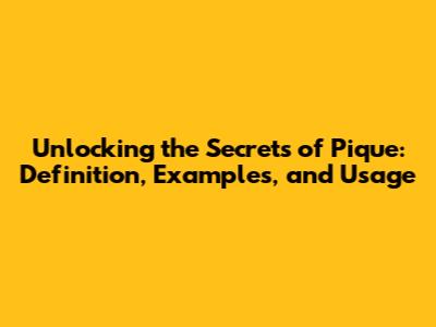 Unlocking The Secrets Of Pique: Definition, Examples, And Usage