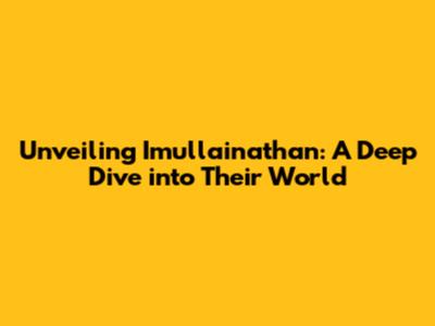 Unveiling Imullainathan: A Deep Dive Into Their World