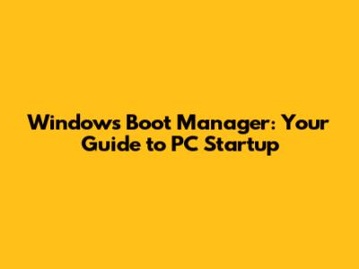 Windows Boot Manager: Your Guide To PC Startup