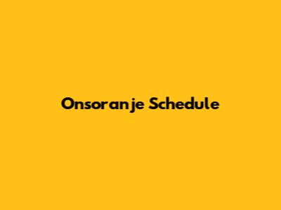 Your Ultimate Guide To The Onsoranje Schedule